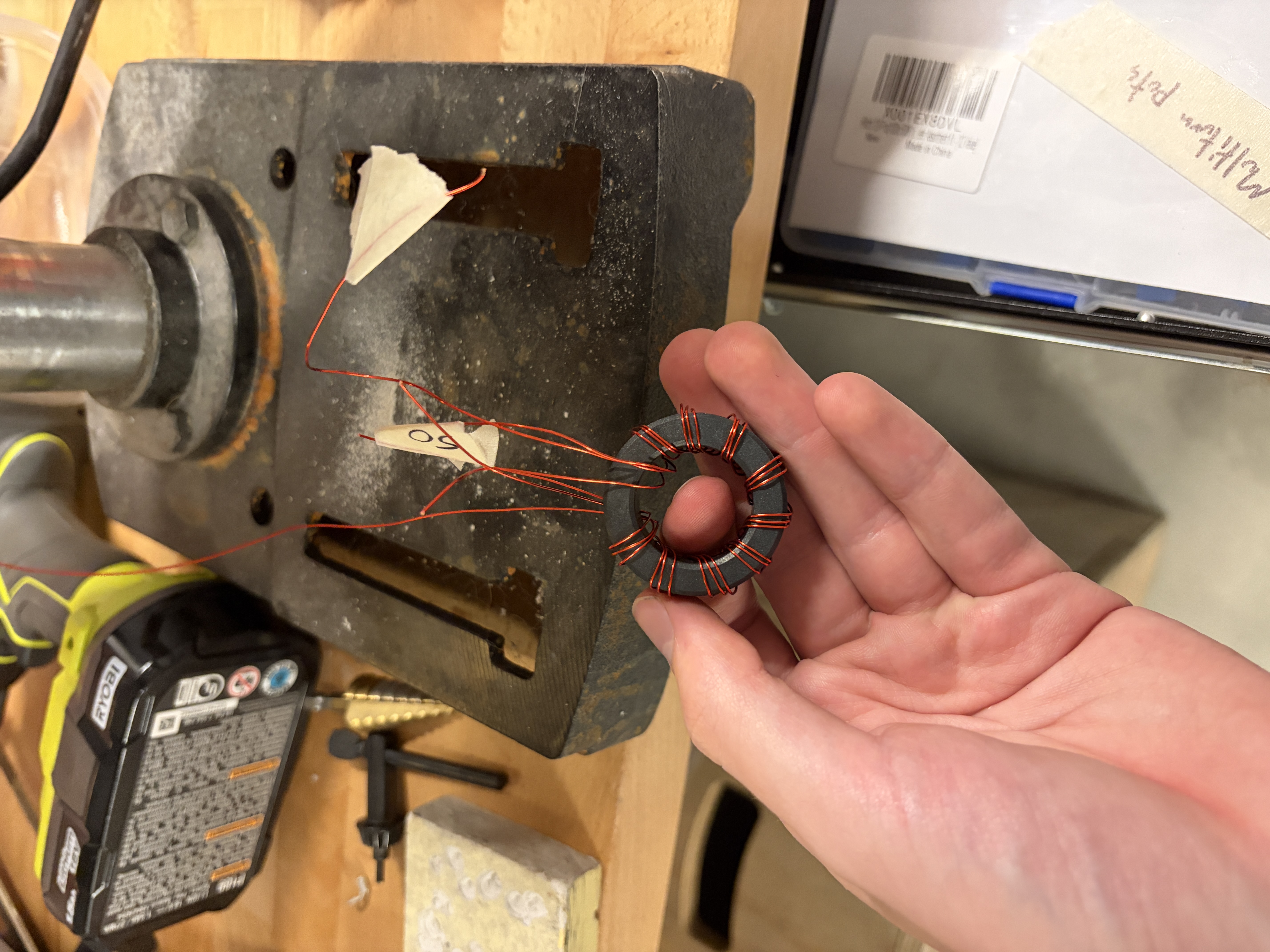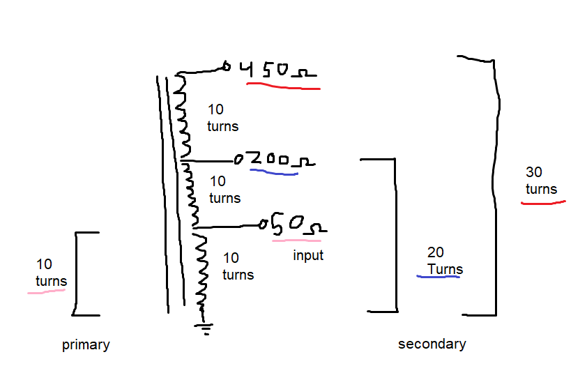 Ham Radio: 9:4:1 Impedance Matching with a Homemade Autotransformer4-5-2026In order to get back on the air at my house, I put together this autotransformer with taps for 9:1 and 4:1 impedance matching based on a design my friend had build in the past. It is designed to go along with a random wire antenna. I'll document it here and write a bit about my experience building it. Completed autotransformer Very basic theoryThe goal of this transformer and any other impedance matching network is to make a load impedance (of an antenna in this case) act like a different impedance (50 ohms for most ham radio stuff) to a given source (radio) in order to minimize reflections and maximise power transfer. You don't need to understand all of the theory in order to make on of these, but it is nice to know. The equation for impedance matching with any transformer can be derived with the following given two coils with turns