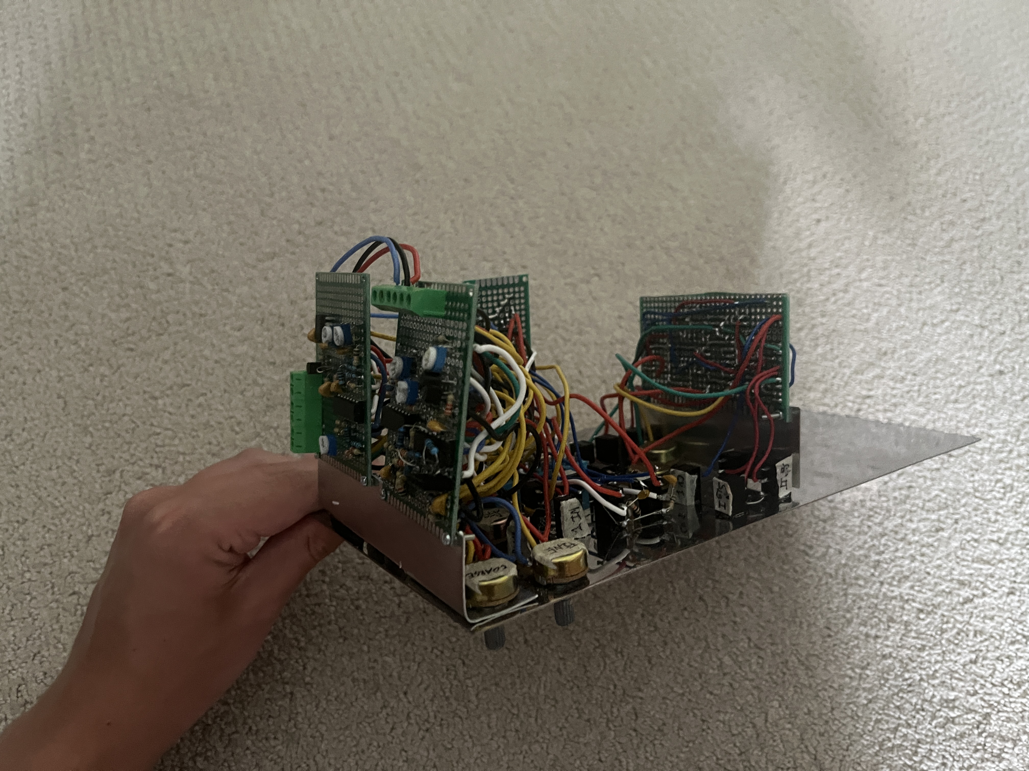 If you live in Austin and are interested in getting licensed or just checking the hobby out, the N5OAK club has quarterly meetings where anyone is welcome and testing after each meeting. I tested for both my Technician and Extra class licences there and had a very good experience. Also for studying for the licence, ARRL has some good licensing manuals on amazon for each class and the site https://hamstudy.org/ is very useful once you've got the concepts down and just need to review. Electronics I picked up an interest in analog electronics while trying to learn how to better take advantage of microcontrollers and make actual physical projects instead of just coding things, but I found the pure analog side very interesting. I got a copy of Electronics for Dummies which was pretty basic but a good intro and later downloaded a pdf of The Art of Electronics, which I absolutely loved, to read while on break at work. I eventually got a physical copy of the book and went through the first half throughout last summer. I have a friend from my school's radio club (Lucas, KI5ZWV) who was interested in building synthesizers for making electronic music, so I thought I would give that a try as a way to apply what I was learning. So far I've been mainly working on a modular synthesizer (only 3 modules down so far) and a few standalone things like an atari punk console pcb, keyboard that fits in a Altoids tin, and a abstract electronic self portrait thing for English class (will post about all of these). I've also done some guitar pedal repair for my dad and one of his friends and have repaired my handheld radio at least twice now. A bit more random but I also picked up this old portable TV from an antique store which I put some adapters on to be able to use it as a monitor. It was a bit funny because it only takes RF input from an antenna so I had to get a AV to NTSC converter and an HDMI to AV adapter and then tune into channel 4 to get a signal.